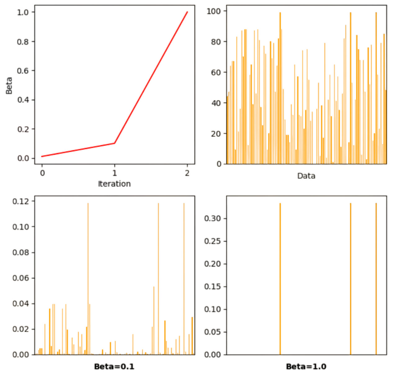 The above exercise reveals one esential property of DA: we cannot converge without keeping the maximizing the entropy. But, what is entropy?