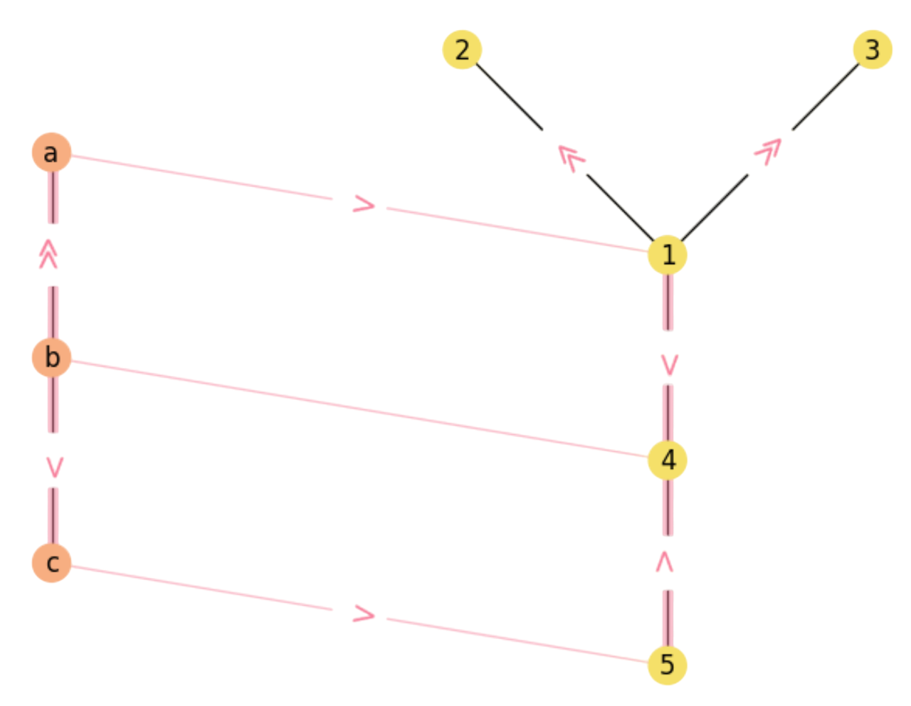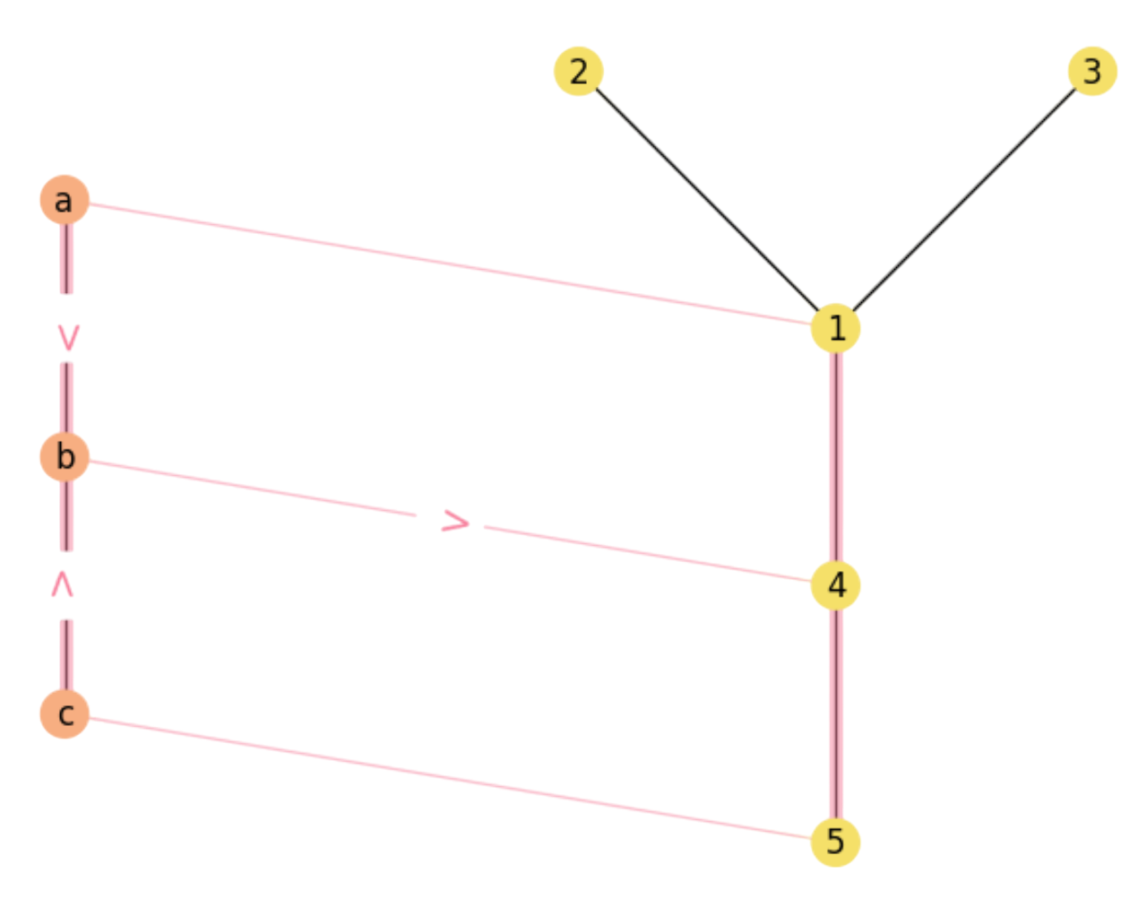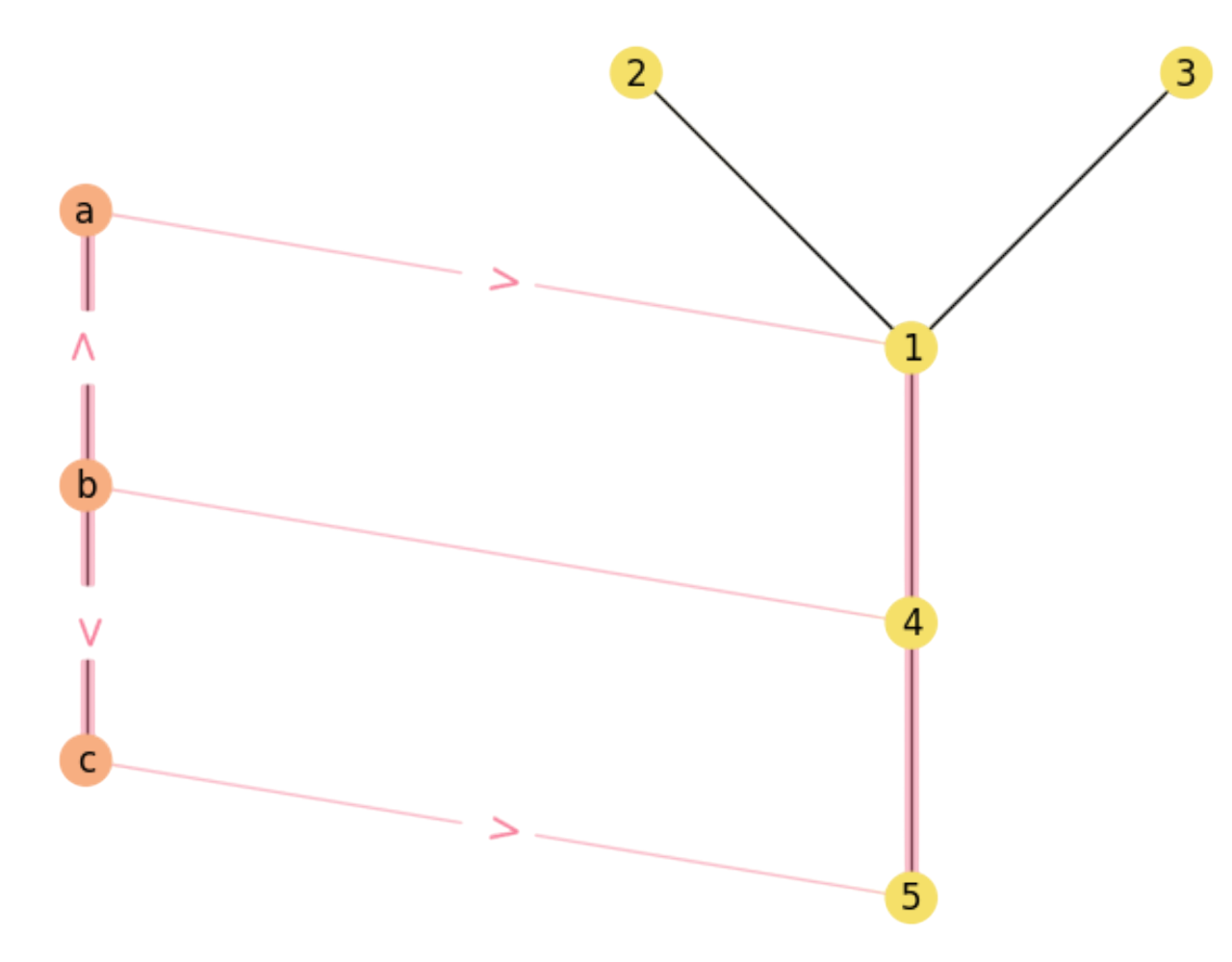 Fig. 2.6 Matching paths \(b\rightarrow a\rightarrow 1\) and \(b\rightarrow c\rightarrow 5\).#