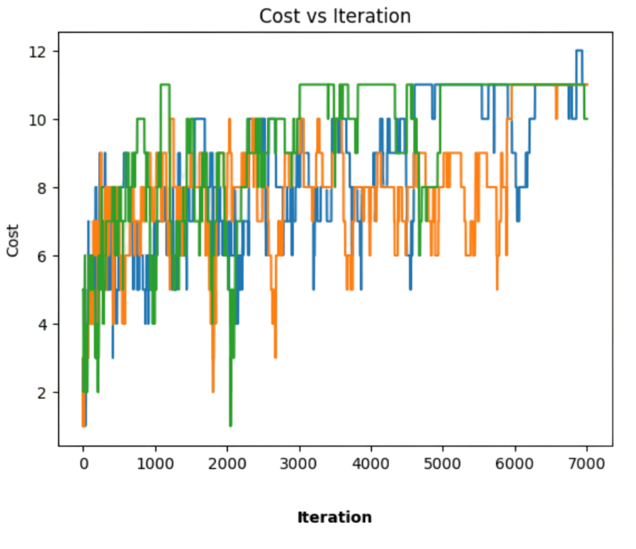 However, this MCS assignment is not unique. Actually we have \({5 \choose 3}=10\) subgraphs of \(Y\) where we can embed \(X\) but only \(8\) of them lead to MCS assignments. In the above table, we encode each MCS injective function \(f_i\) as a list of pairwise matchings \((v\in V, f_i(v)\in V')\):