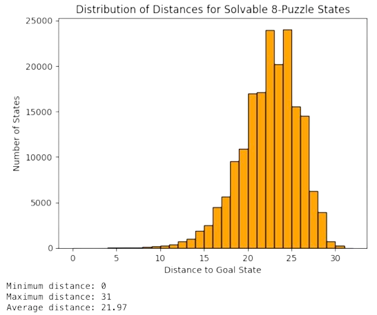 See also in Fig. 3.16, that the Rubik solver takes \(N\) moves on average (where \(N\) is God’s number). However, there is a significant devation both up and below God’s number!