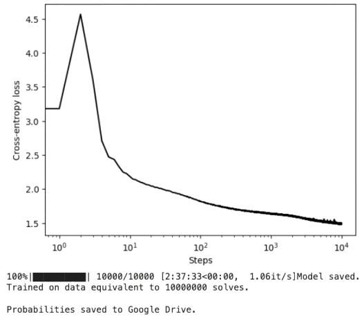 Power Law. Obviously, a small value of \(k\) in \(2^k\) (max. size of \(\text{OPEN}\)) usually leads to poor solutions (we are sacrificing optimality to contain the combinatorial explosion). However, the experiments in Self Supervised Rubik show that as we move from \(2^7\) to \(2^{18}\), the Rubik solver improves significanlty. This is consistent with the scaling law used for Transformers.