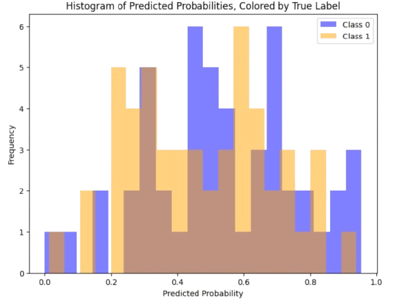For a larger example, we have that when the configuration \(\theta\) of the predictor is not good, then \(q_{\theta}(m=1|\mathbf{x})\) and \(q_{\theta}(m=0|\mathbf{x})\) overlap significantly (see Fig. 3.9).