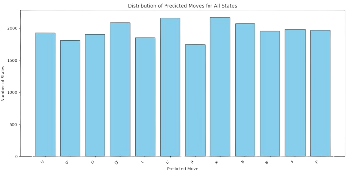 Permutations. Note that we have 3 types of move: horizontal, vertical and face (side) twist. In addition, if we rotate the upper block to the left, the opposite is to make the same rotation but counter-clockwise. Thus, we have six more rotations: U’, D’, R’, L’, F’ and B’. Thus, strictly speaking, we have \(12\) possible rotations to choose from any configuration. In the state-space language, each state may span \(n=12\) states.